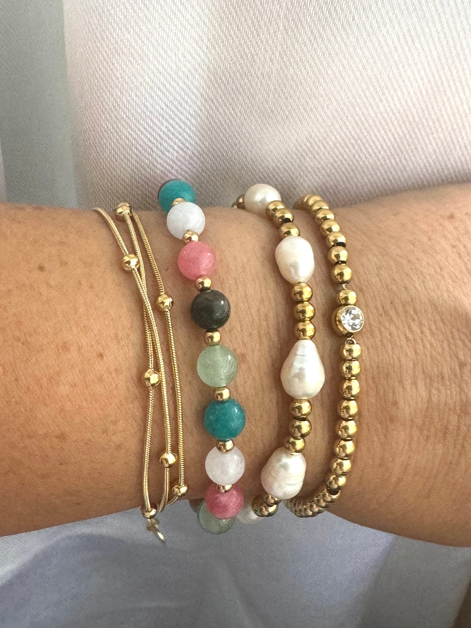 Jade bead and stainless steel beads. Ajustable bracelet.