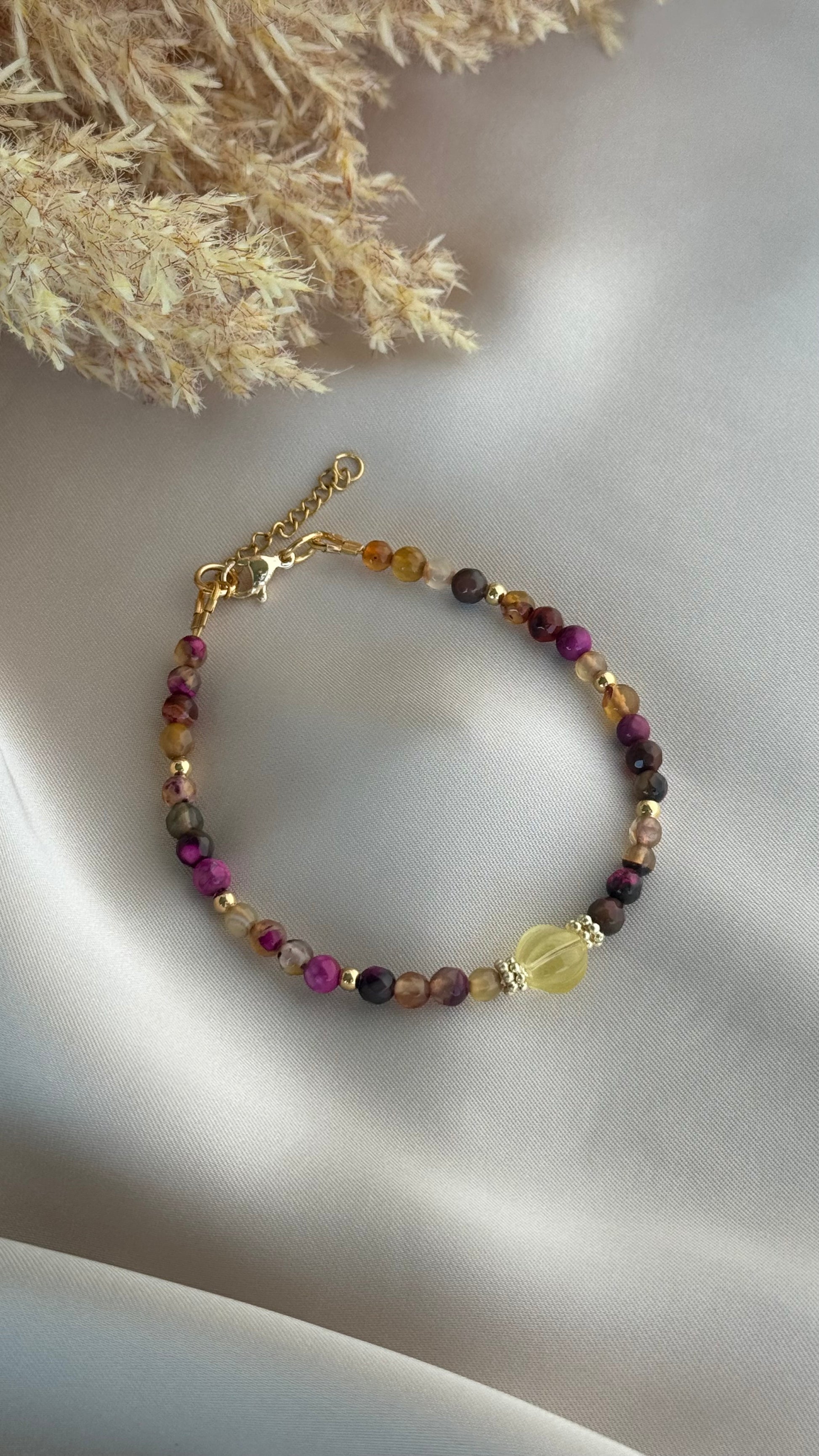 Made from semi precious jade stone, gold plated beads and measures 7 inches plus extension.
