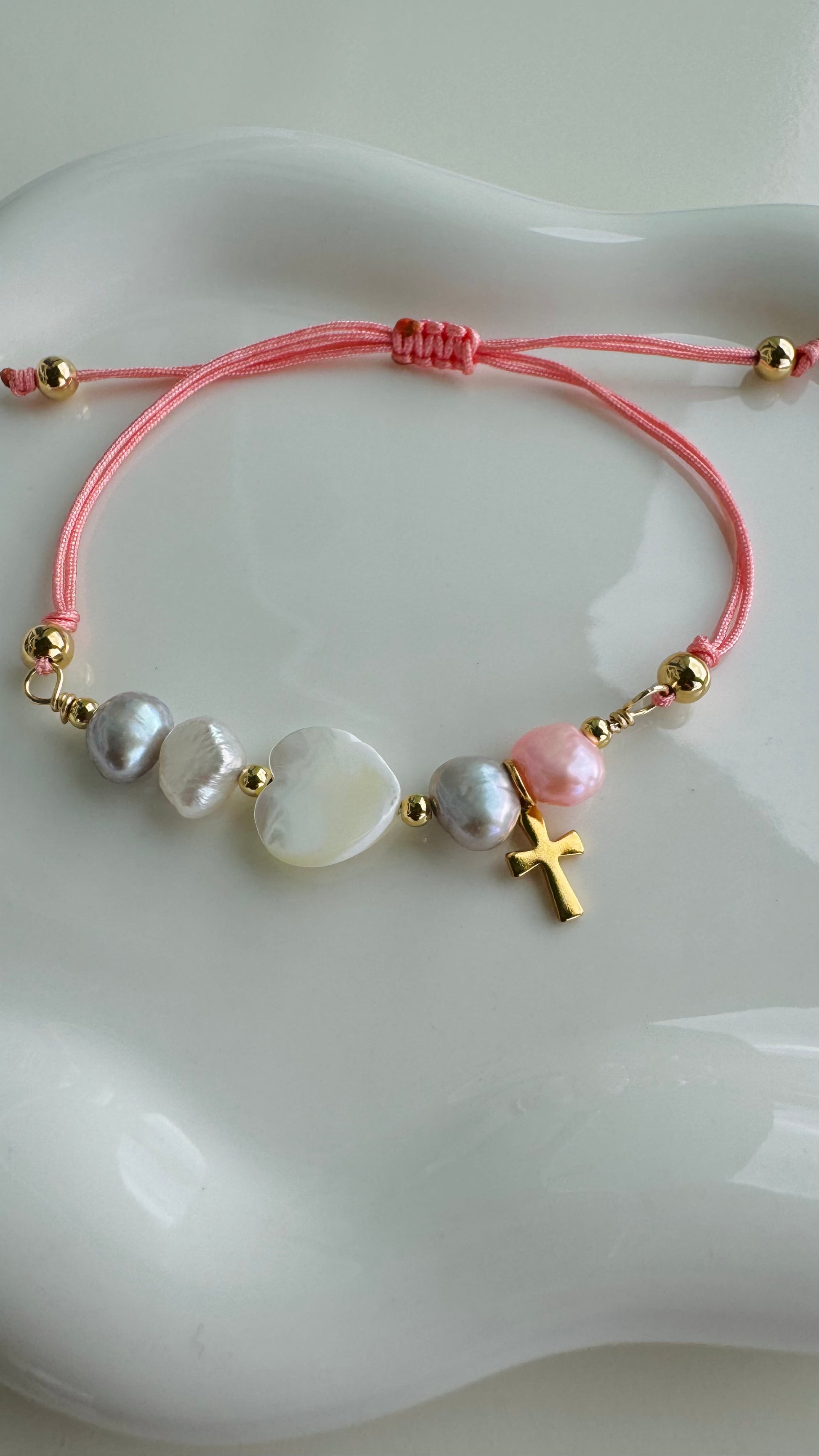 Handmade of fresh water pearls, mother of pearl and gold plated beads. A bracelet with purpose design to elevate and empower you each time you wear it. It not only uplifts your outfit but it nutre your spirit and reminds you are valuable.