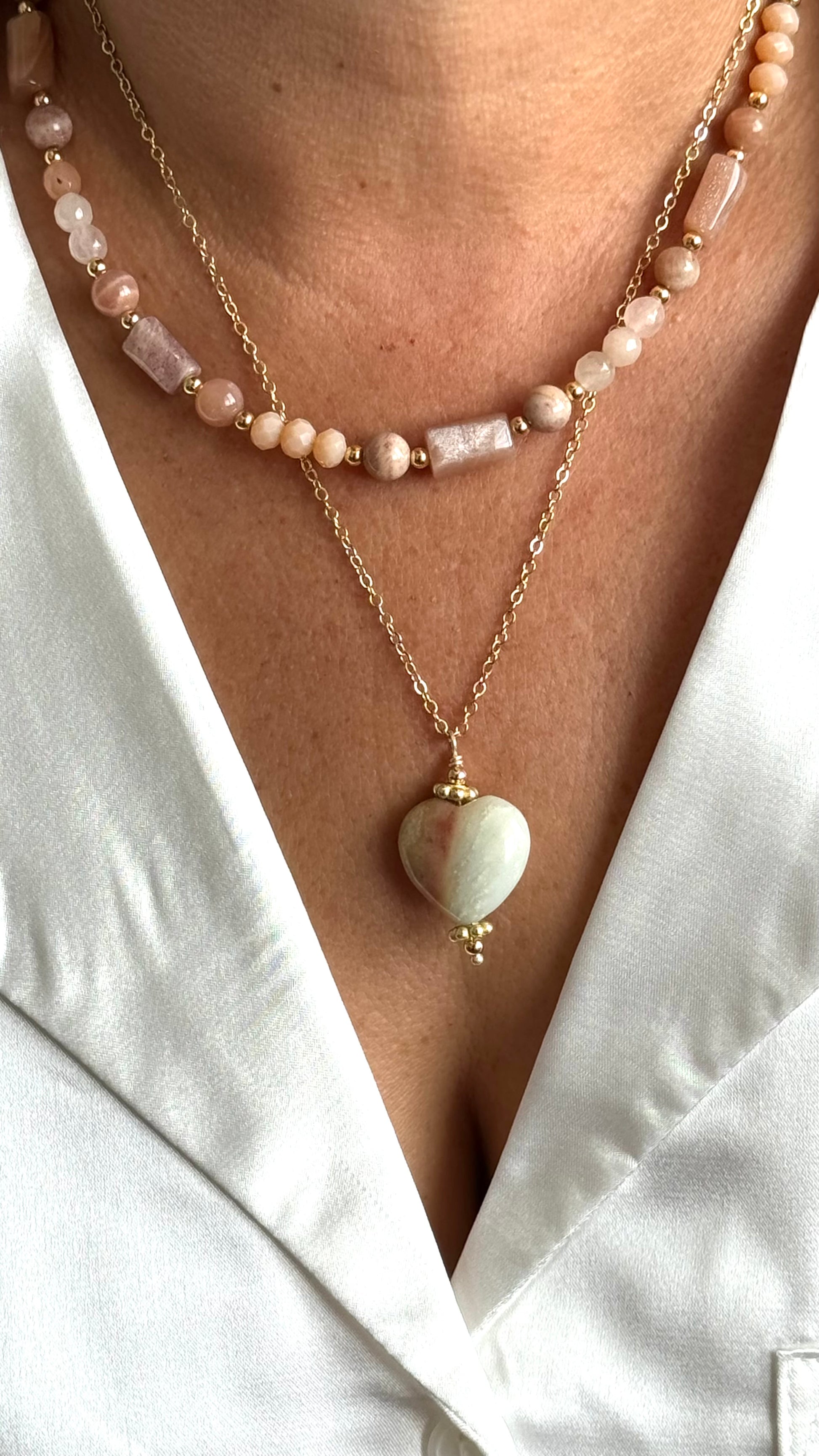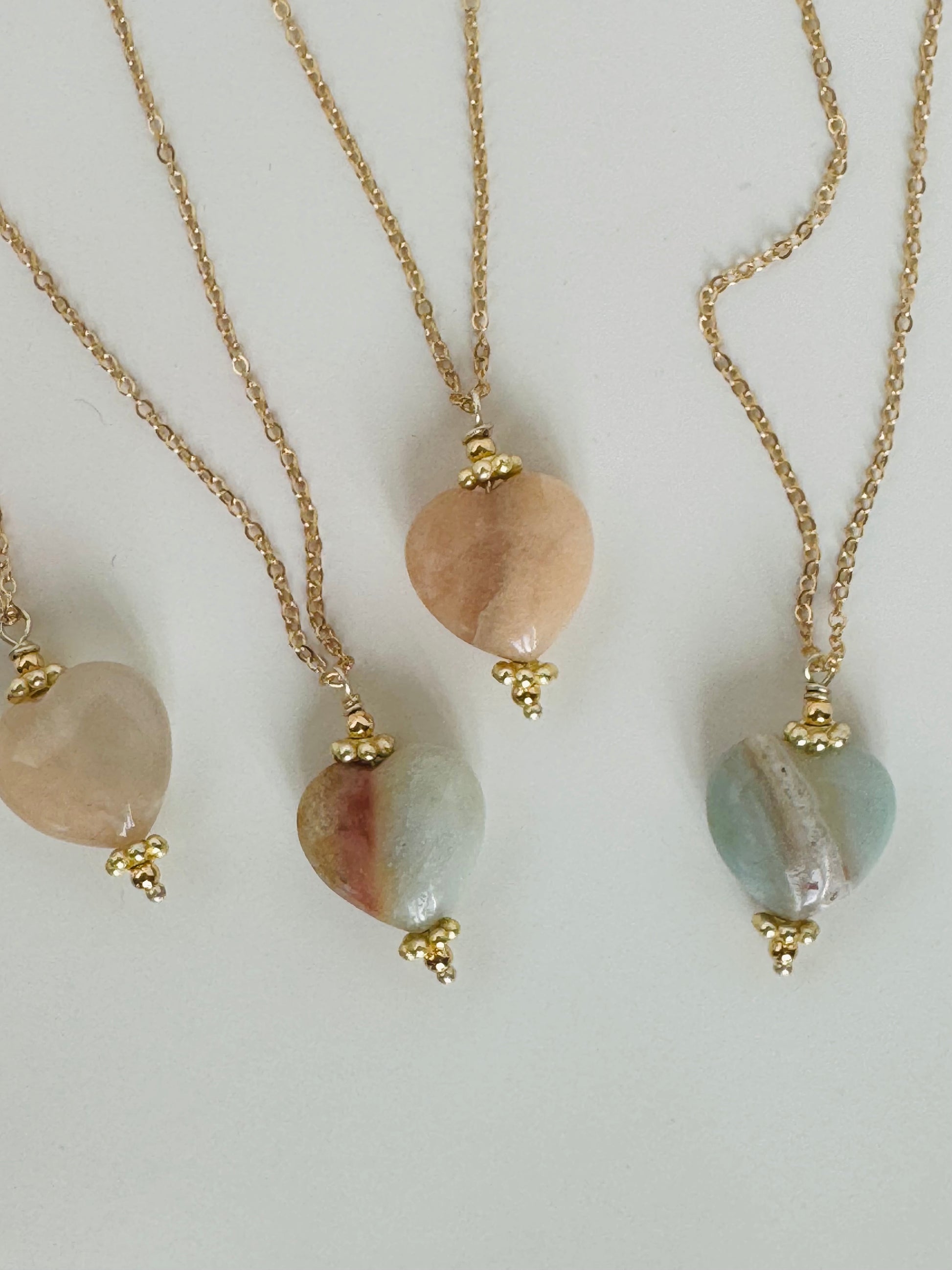 Gemstone heart pendant with stainless steel necklace. Measure 17-18 inches long.