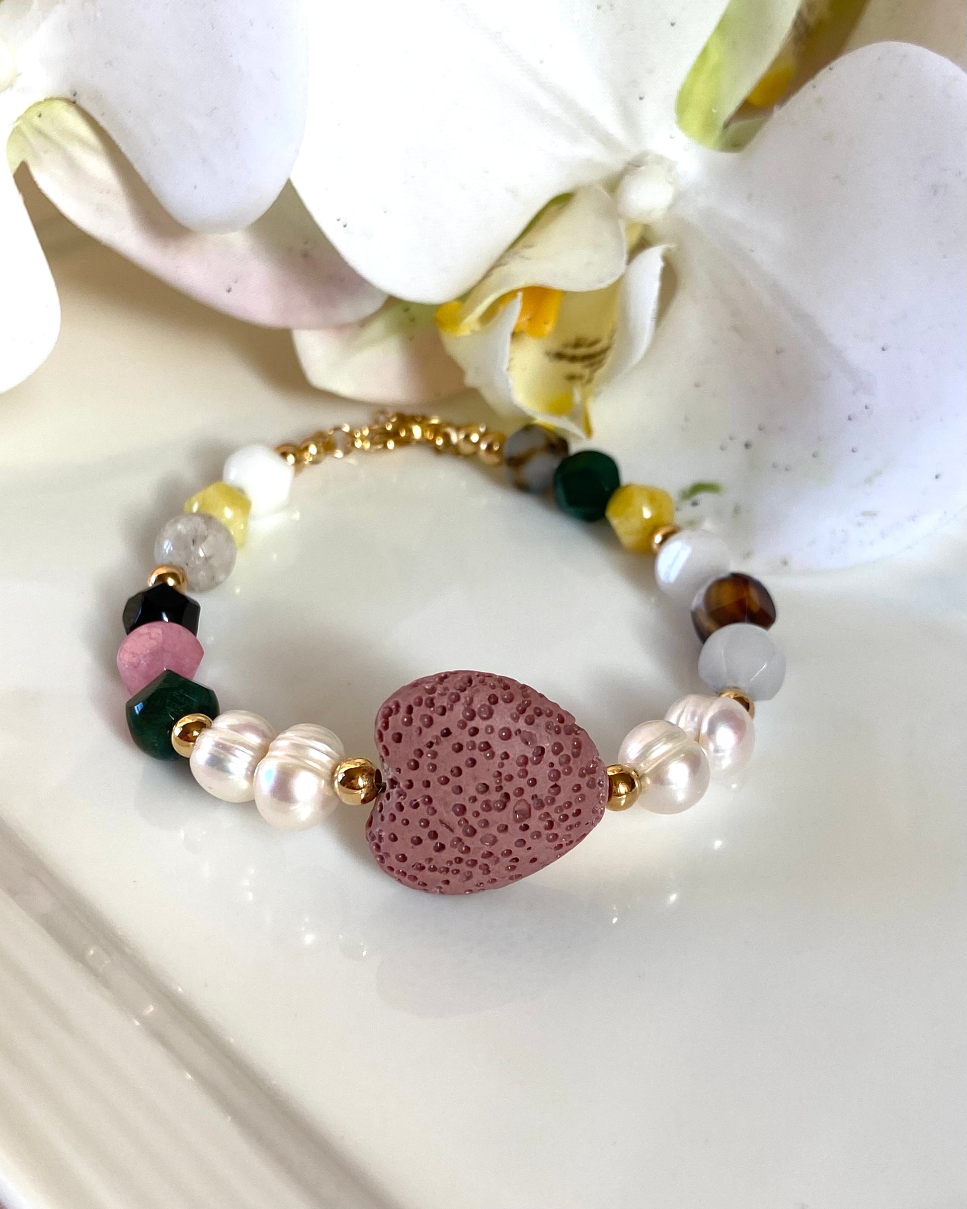 It’s made of gemstones, fresh water pearls and 14 gold plated accents.