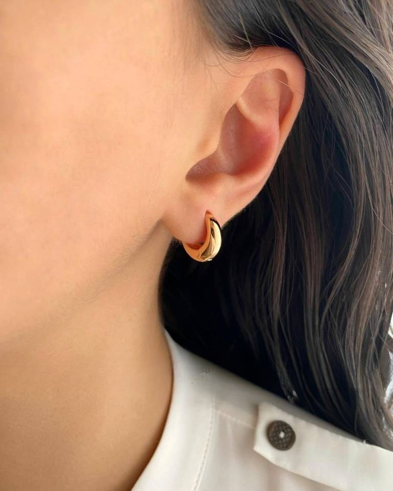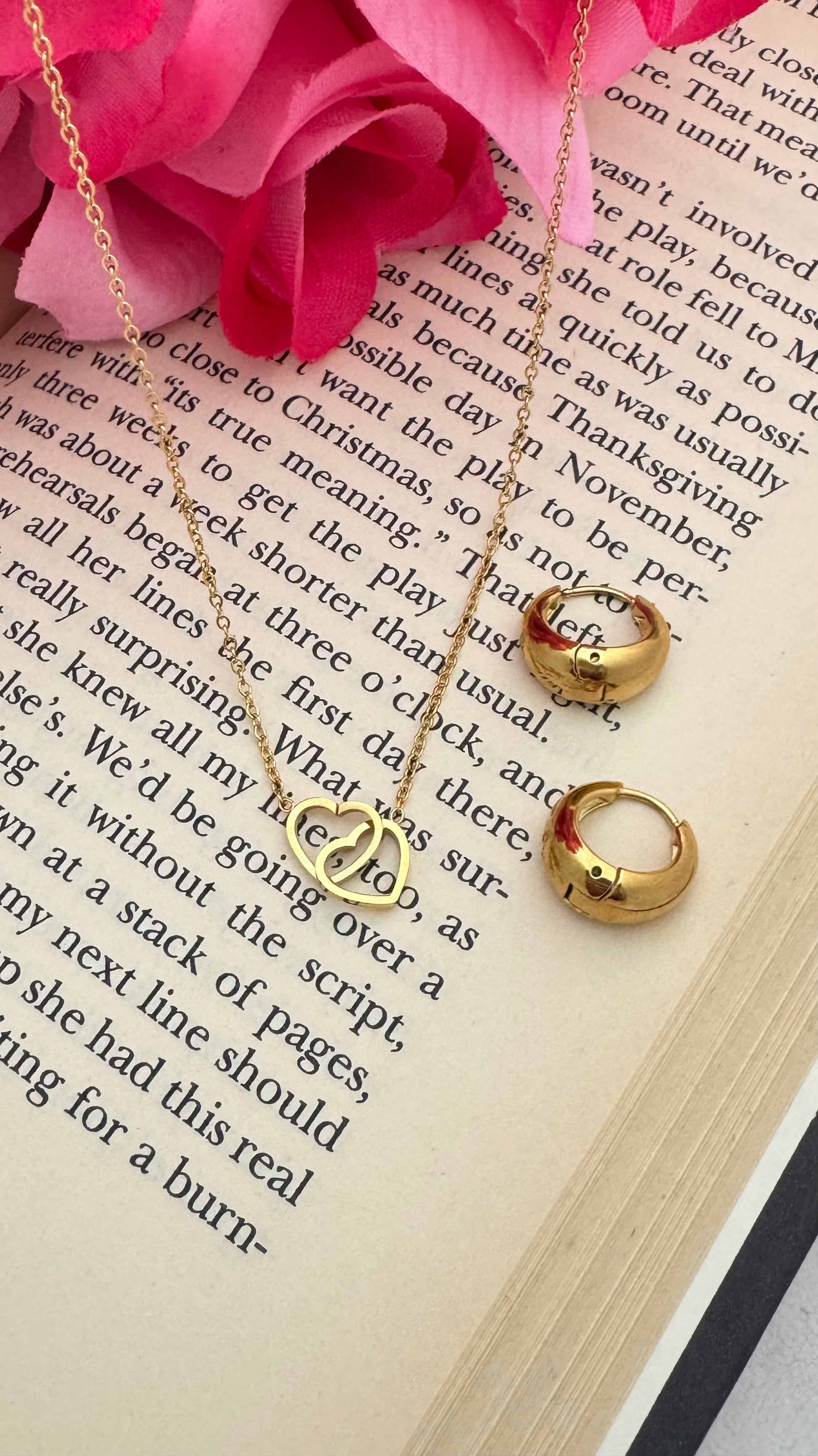 Stainless steel Heart necklace with a pair of stainless steel small hoop earrings.