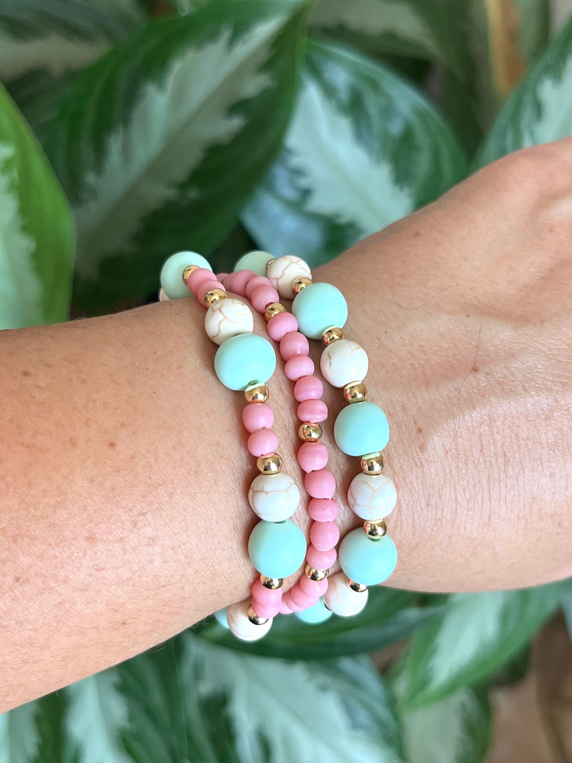 This is a 3 in 1 ajustable bracelet. Representing self love towards one’s self. Made out of recycle material and gold plated beads. Made to fit any wrist size.
