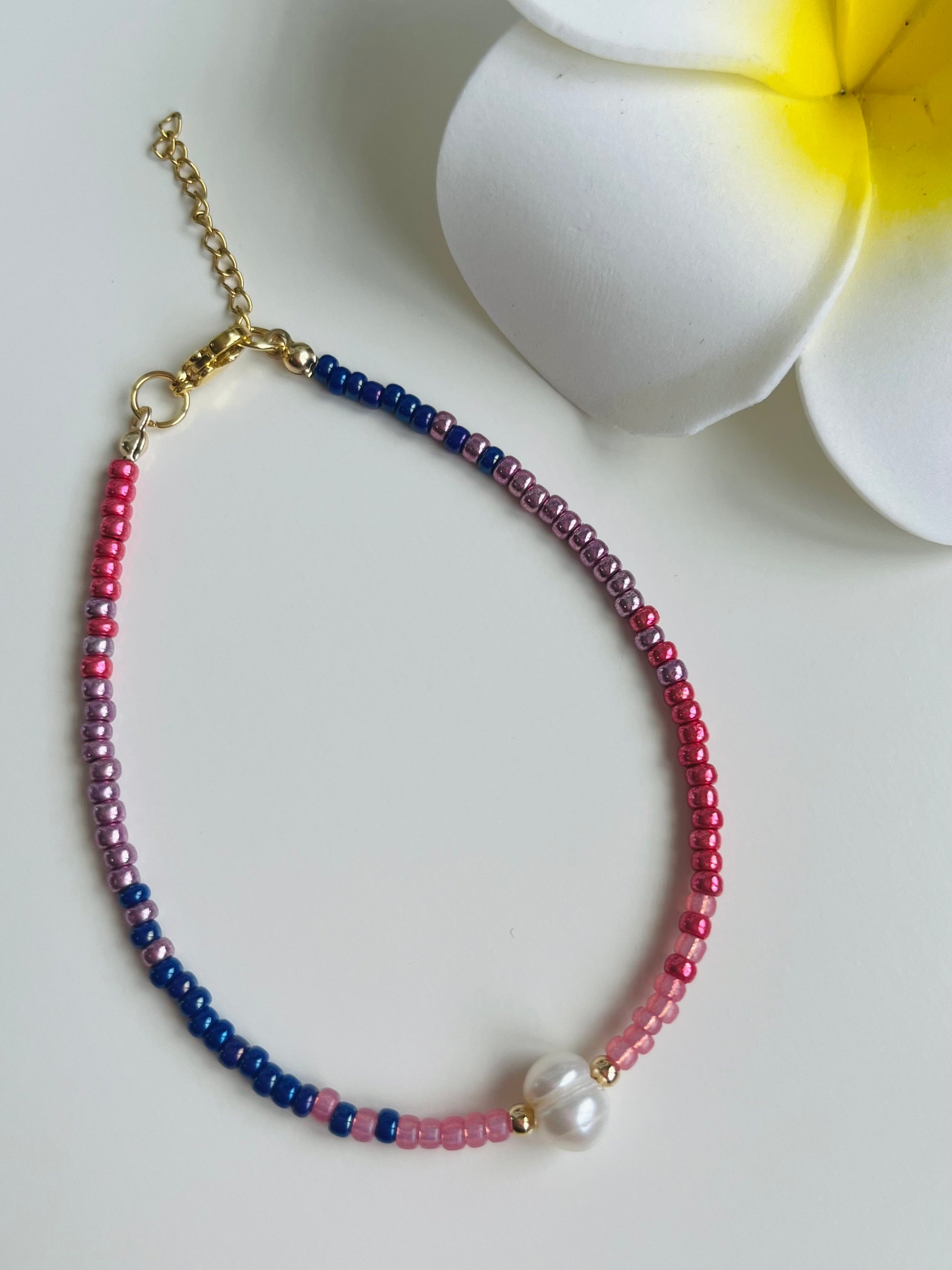 Made of Miyuki seed beads, fresh water pearls and gold plated beads.