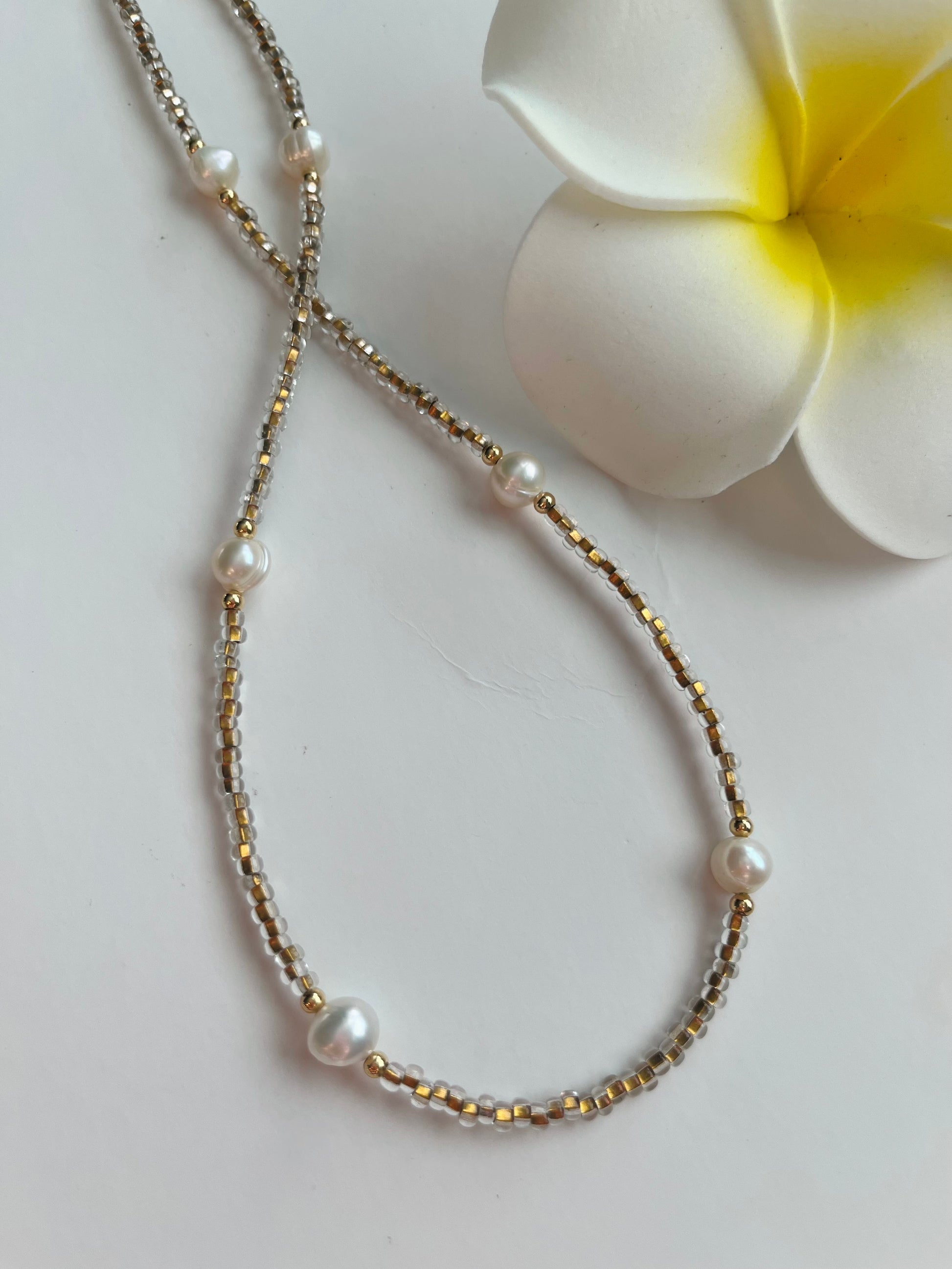 This beautiful Czech glass beed summer necklace is the perfect Accesory for any summer outfit. Add some sparkle to any look by wearing this eye catching necklace. Crafted with gold glass beed, this necklace is sure to make a statement. Grab yours and stand out this summer.