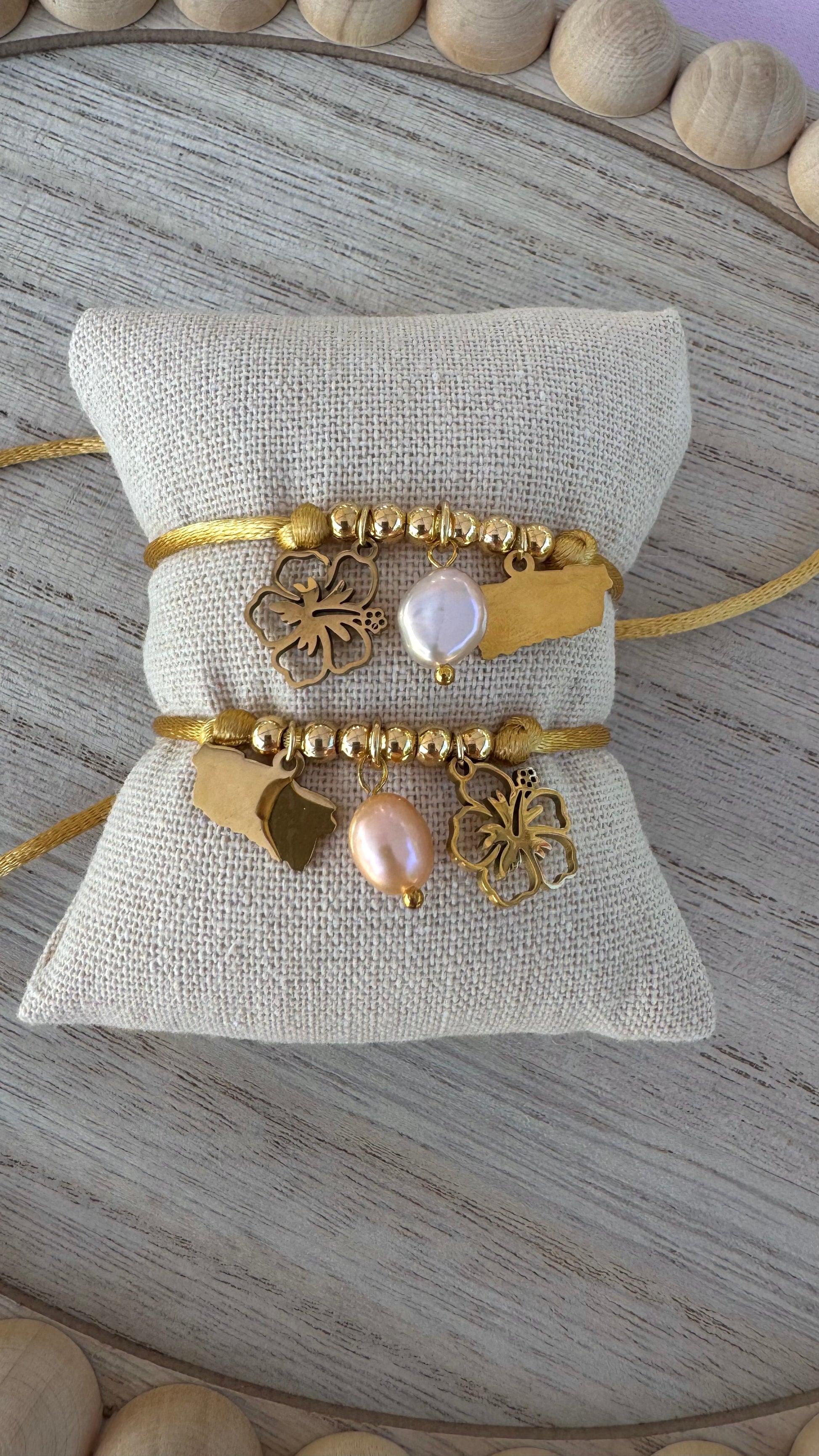 Ajustable bracelet made with stainless steel charms and a fresh water pearl. A bracelet representing your heritage. Being proud to be from Puerto Rico.