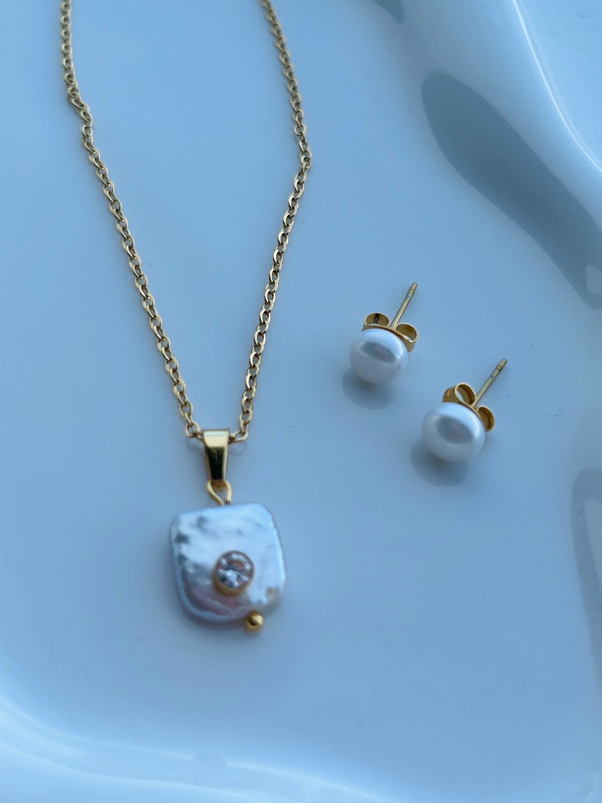 Square Zirconia Pearl set
