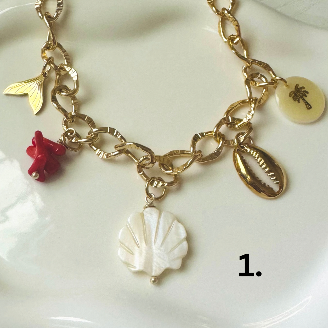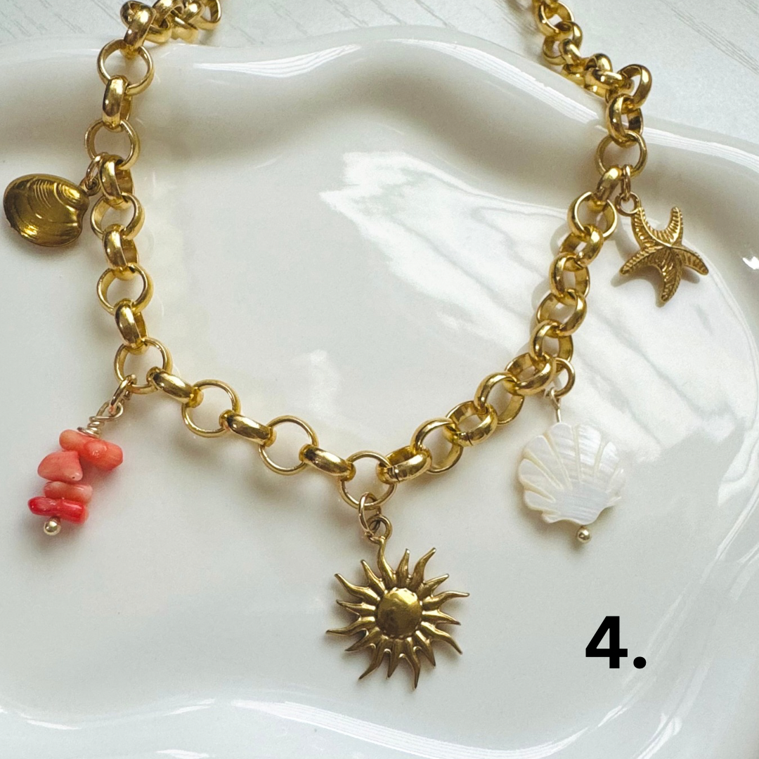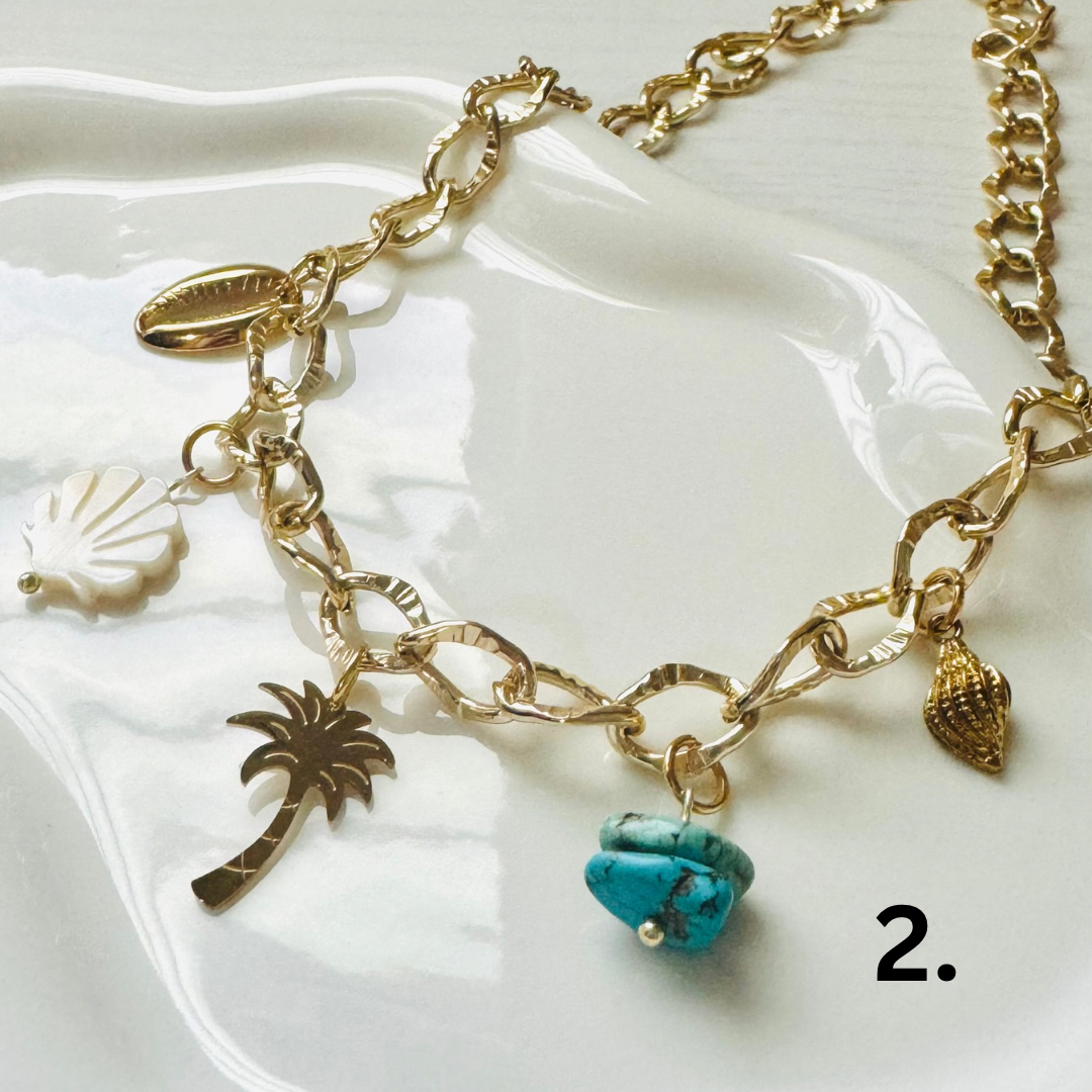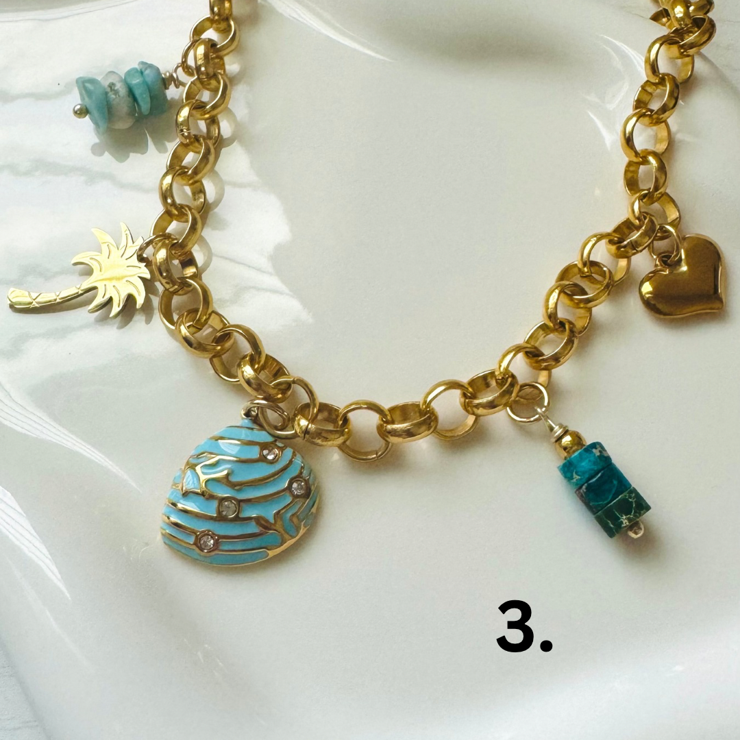 A necklace that provides you with the summer essence and give your outfit the perfect summer look. Necklace made out of aluminum and gold plated stainless steel charms.