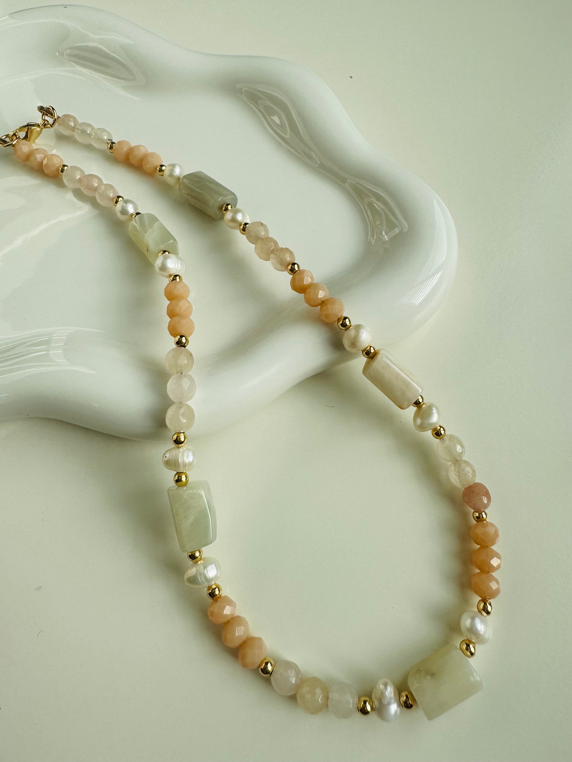 Natural moonstone with gold filled findings. Measures 16 inches plus extension
